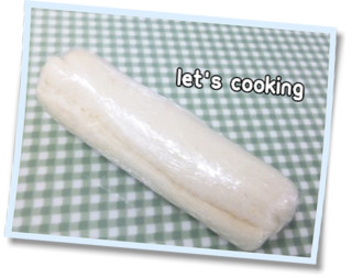 で、ちくわをパンにのせて、ラップを用いて巻き巻き...
