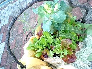 顔は黒ごまと、水菜