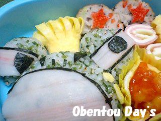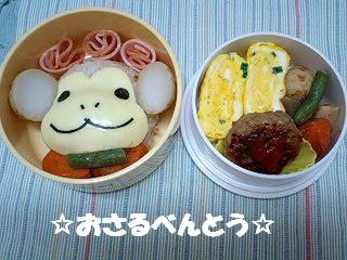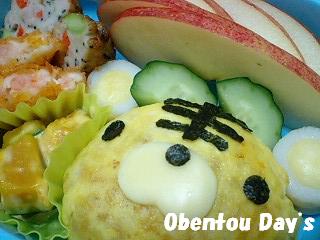 薄焼き卵、スライスチーズ、海苔、ちくわ鶏ひき肉が無かったので、豚ひき肉でケチャップライスを作ったよw