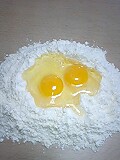小麦粉に~、塩と卵、オリーブオイルを入れて