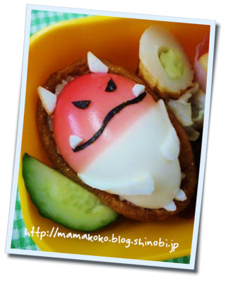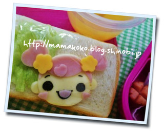 海苔の顔パーツを貼ってアイちゃんを作ります。