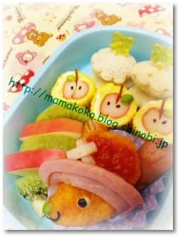 『チョッパーもどきなお弁当』 ■□■ お弁当メニュー ■□■*冷凍食品でチョッパーエビ寄せフライ(冷凍食品)、ハム、ウインナー、