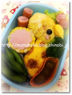 『きりんさんオムライスおにぎりべんとう』 ■□■ お弁当メニュー ■□■*きりんさんオムライスおにぎり&卵焼き*卵焼き(首):卵、出汁の素、塩、醤油、茹でウインナー 白身を少し取り分け、お醤油で茶色く色付けしておく(模様用)