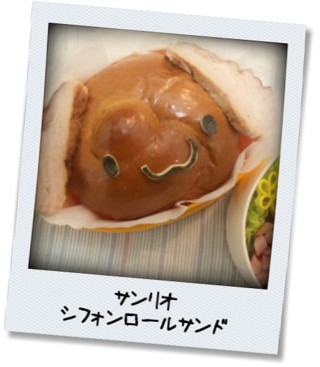 ■□■メニュー ■□■*シナモンサンド黒糖ロールパン、レタス、ハム、スライスチーズ、マヨネーズ、のり、焼き豚ロールパンを1/2の薄さの位置でスライスする